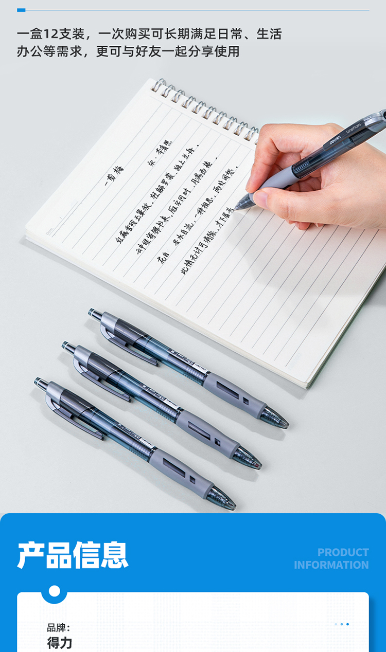 得力(deli)S08 按動子彈頭中性筆 黑色簽字筆 0.5mm 12支/盒