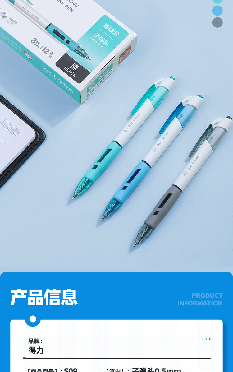 得力(deli)S09 按動子彈頭中性筆 黑色簽字筆 0.5mm 12支/盒