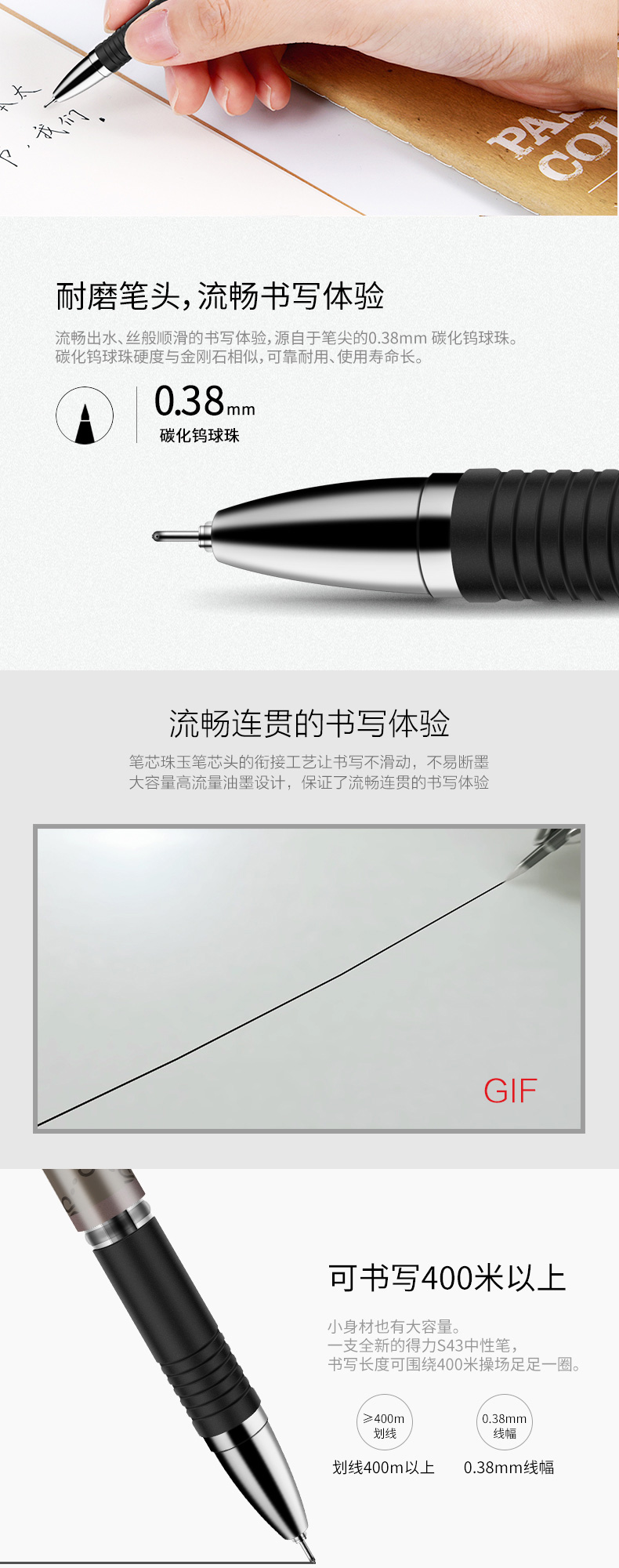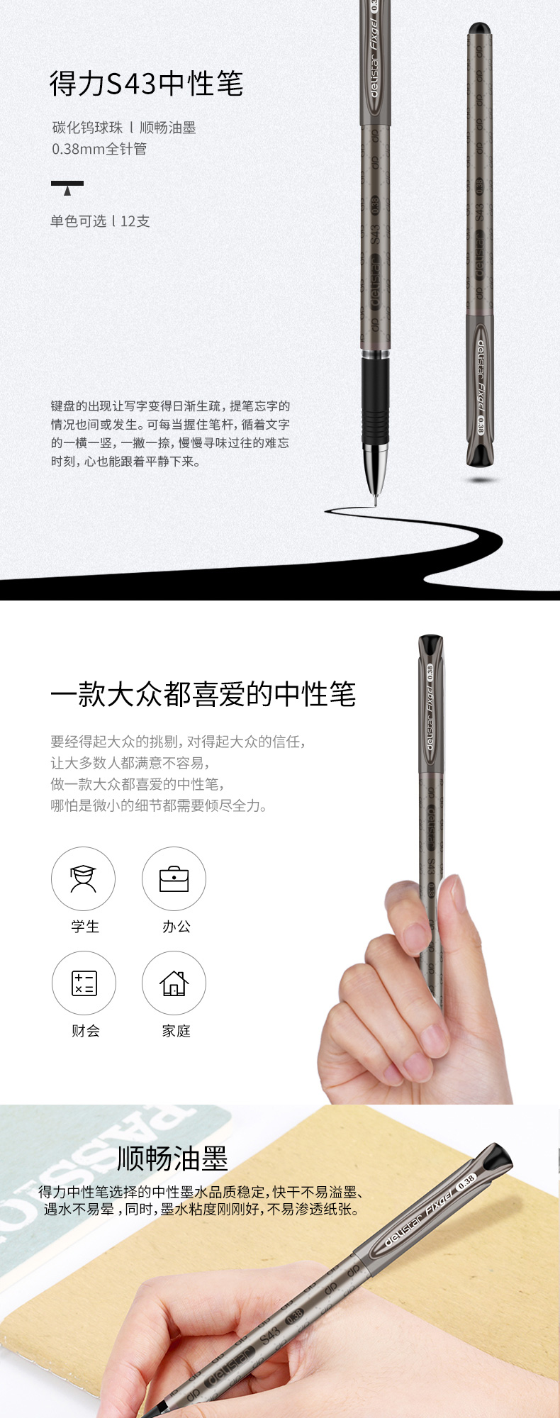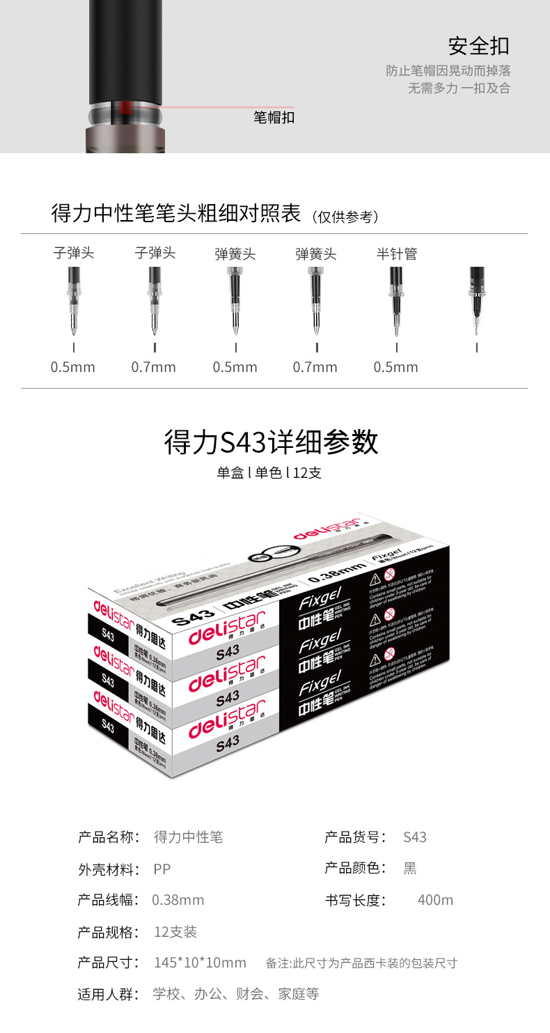 得力(deli)S43 財(cái)務(wù)專用中性筆 黑色簽字筆 0.38mm 12支盒