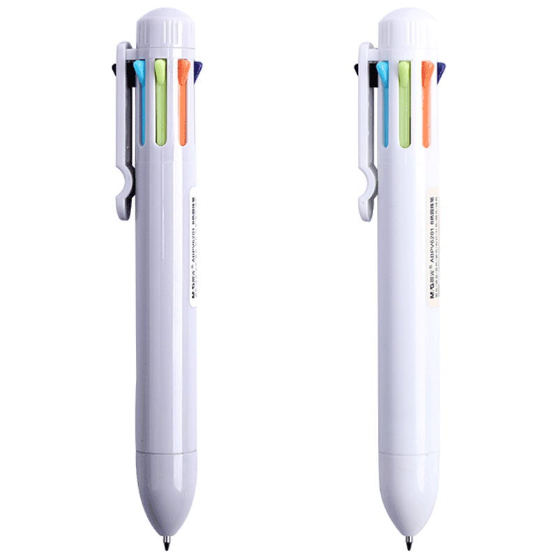 晨光 八色圓珠筆按壓式油筆多色中性筆合一 0.7黑色子彈頭彩色筆 V6201