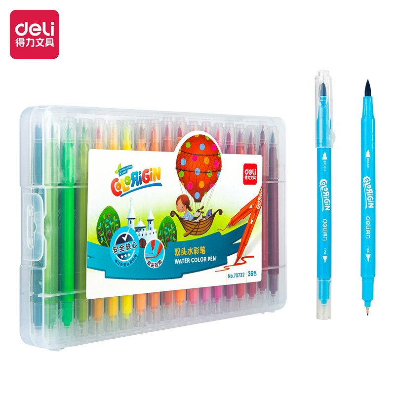 得力(deli)36色學(xué)生雙頭軟筆頭水彩筆 70732