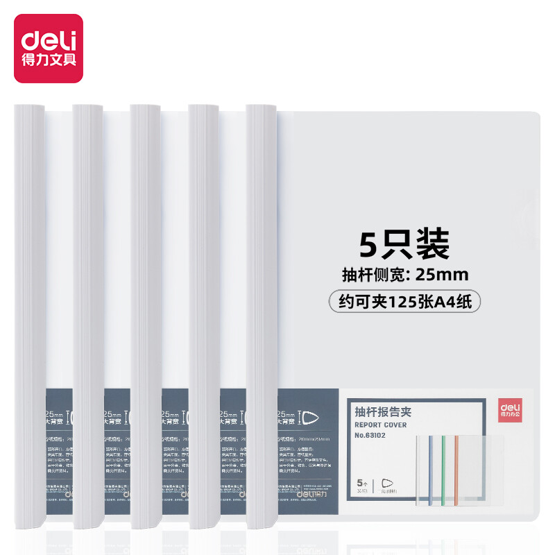 得力(deli)5只A4透明拉桿夾 63102白色
