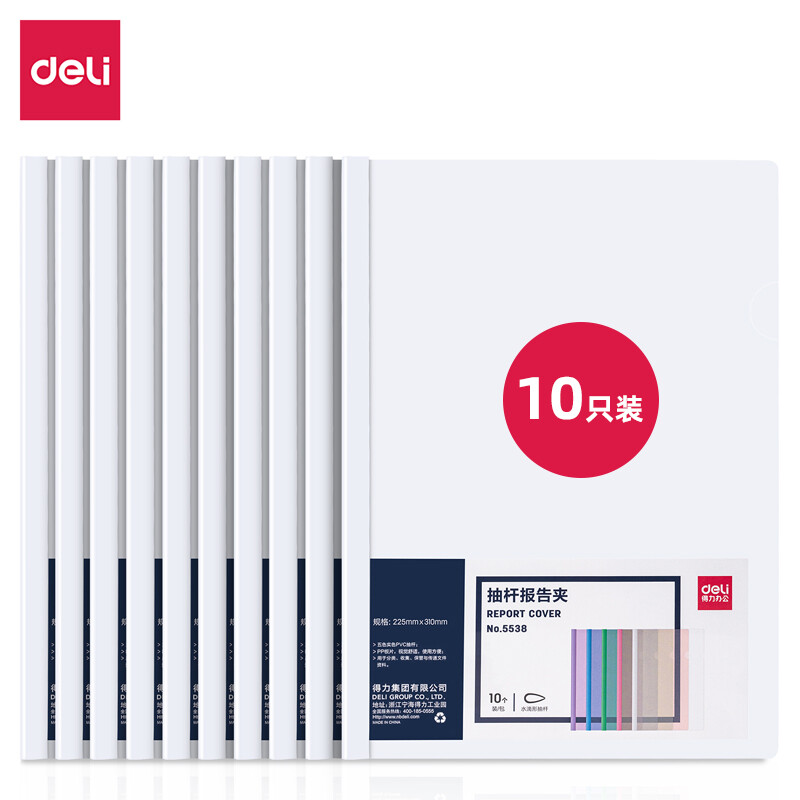 得力(deli)10只A4水滴形拉桿夾 5mm報告夾簡歷夾 5538 白色透明