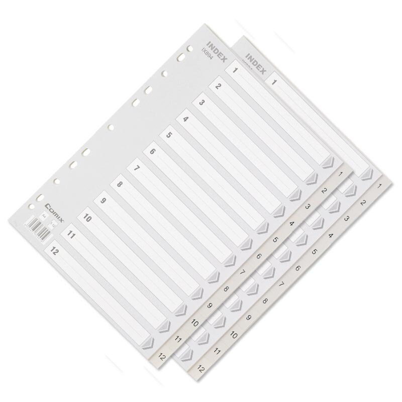 齊心(COMIX) IX894 易分類 年度索引紙 A4 12頁(yè)1-12 11孔 PP