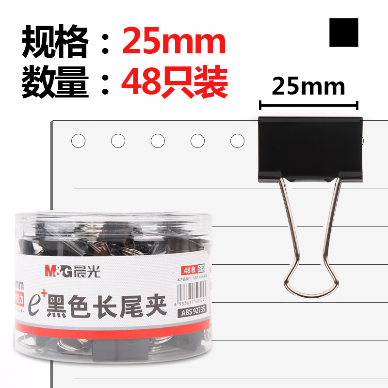 晨光(M&G) Eplus 長(zhǎng)尾夾/長(zhǎng)尾夾票夾 黑色(4#ABS92735/25MM 48枚/筒)
