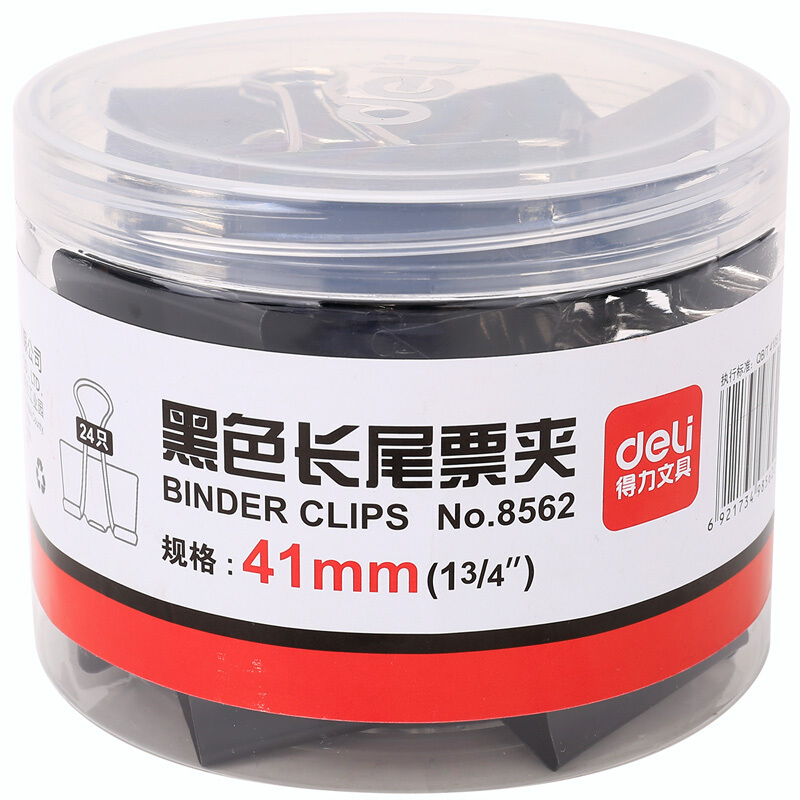得力(deli) 8562 2#黑色長(zhǎng)尾夾/長(zhǎng)尾票夾41mm 24只/筒 黑色