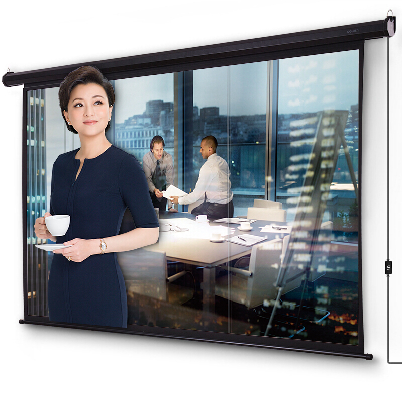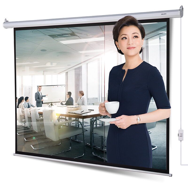 得力(deli) 50490 84英寸 4:3電動(dòng)調(diào)節(jié)投影幕布投影布 家用投影儀幕布