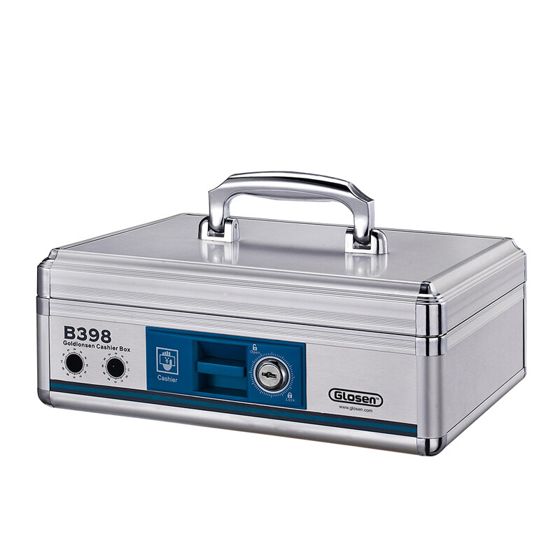 金隆興(Glosen) B398 鋁合金材質收銀箱/手提金庫帶鎖(銀色)