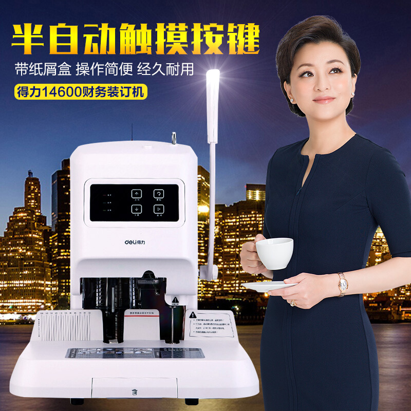 得力(deli) 14601 自動財務憑證裝訂機 電動檔案文件打孔機 激光定位