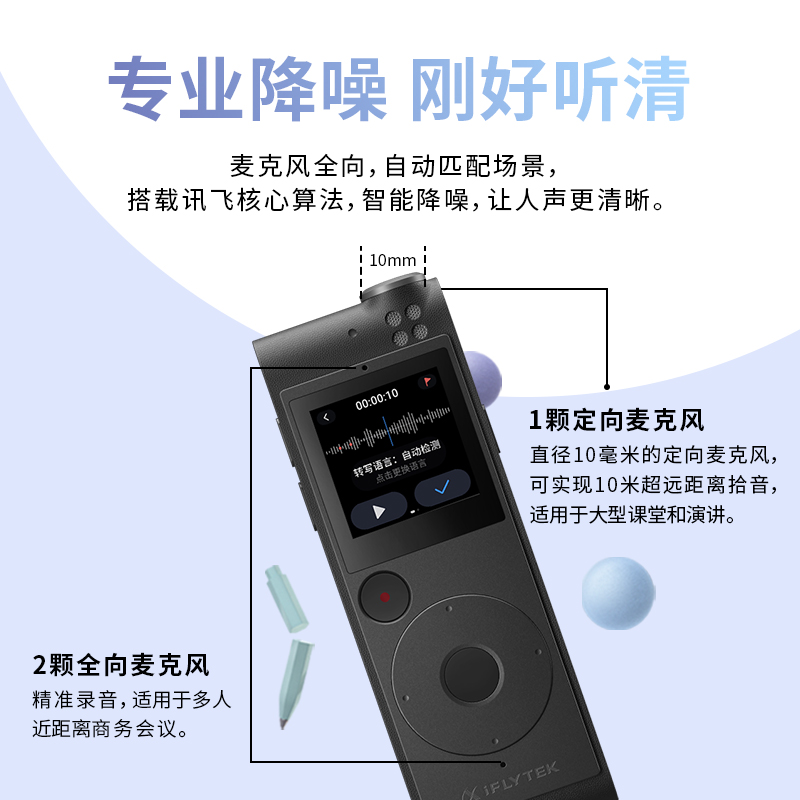 科大訊飛AI智能錄音筆SR702終身免費(fèi)轉(zhuǎn)寫 中英文邊錄邊譯 離線轉(zhuǎn)寫保存 OCR提取圖片文本 32G+云儲存星空灰