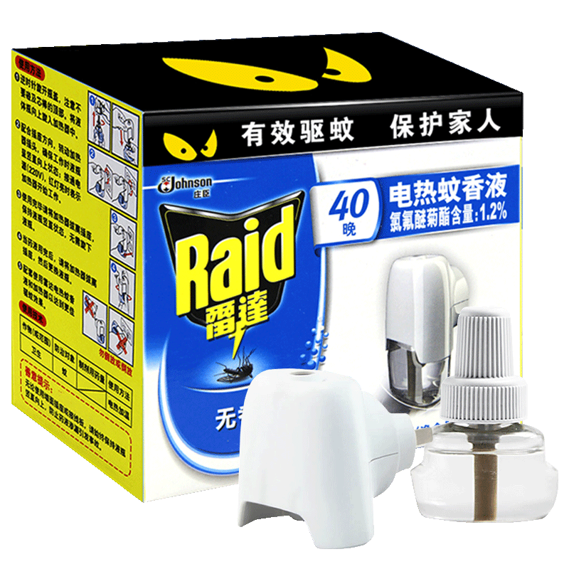 雷達(dá)(Raid) 拖線式電熱蚊香液加熱器+40晚無香驅(qū)蚊液
