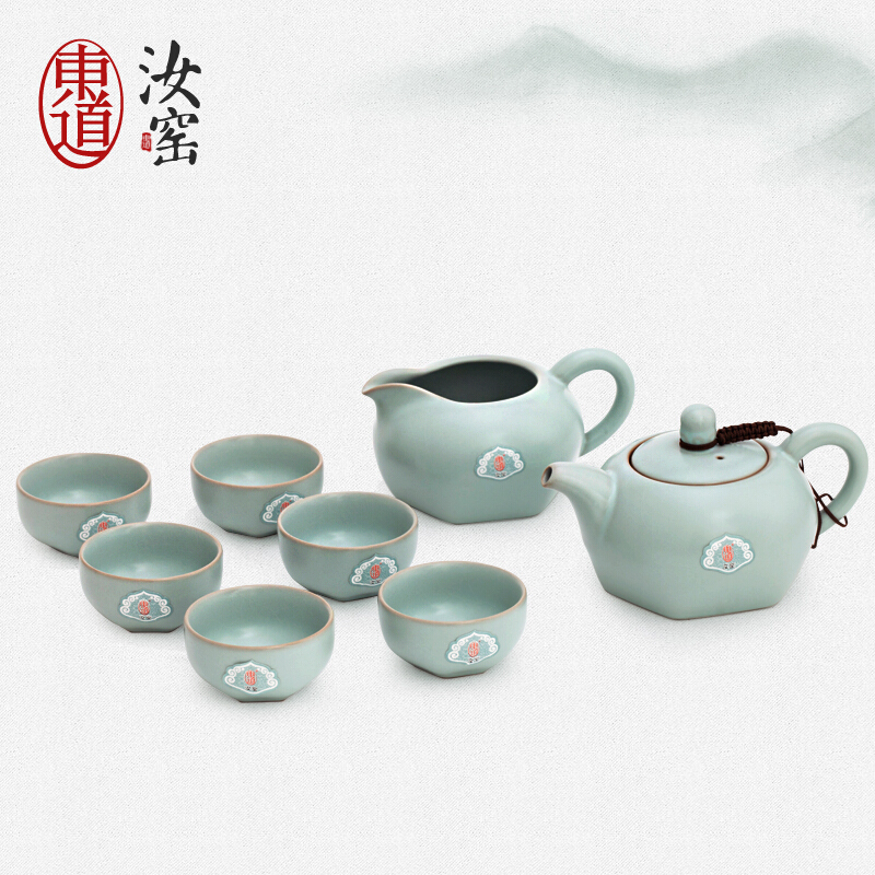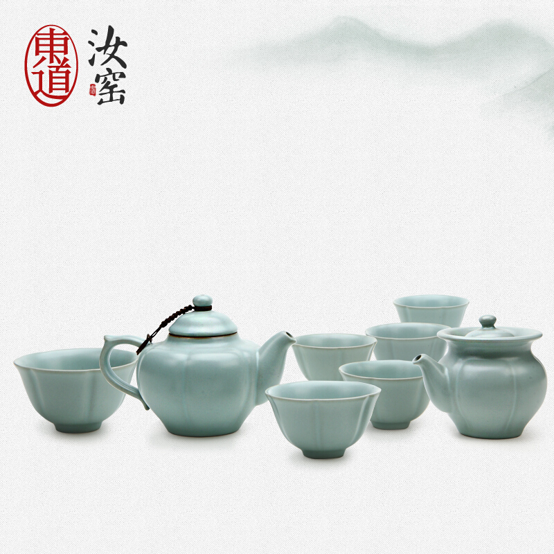 東道汝窯 整套功夫茶具 柿柿如意茶具套裝/1壺1海6杯(天青色)