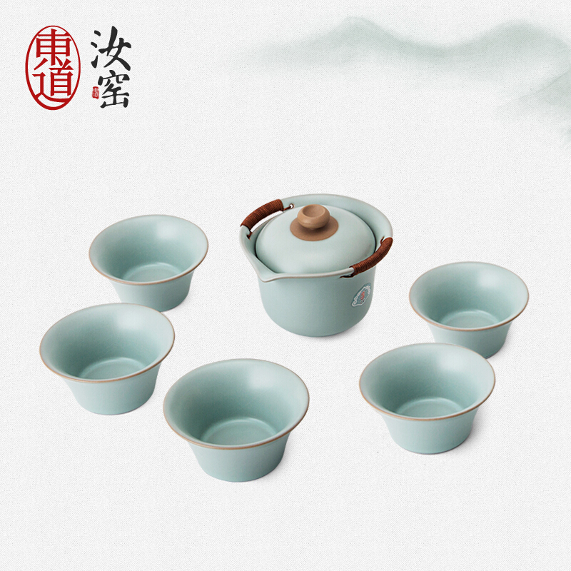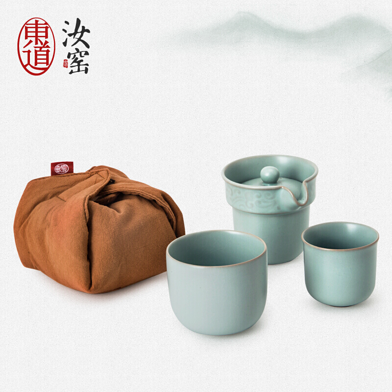 東道汝窯 功夫茶具套裝 禪意旅行茶具套裝/1茶側(cè)2杯(天青色)