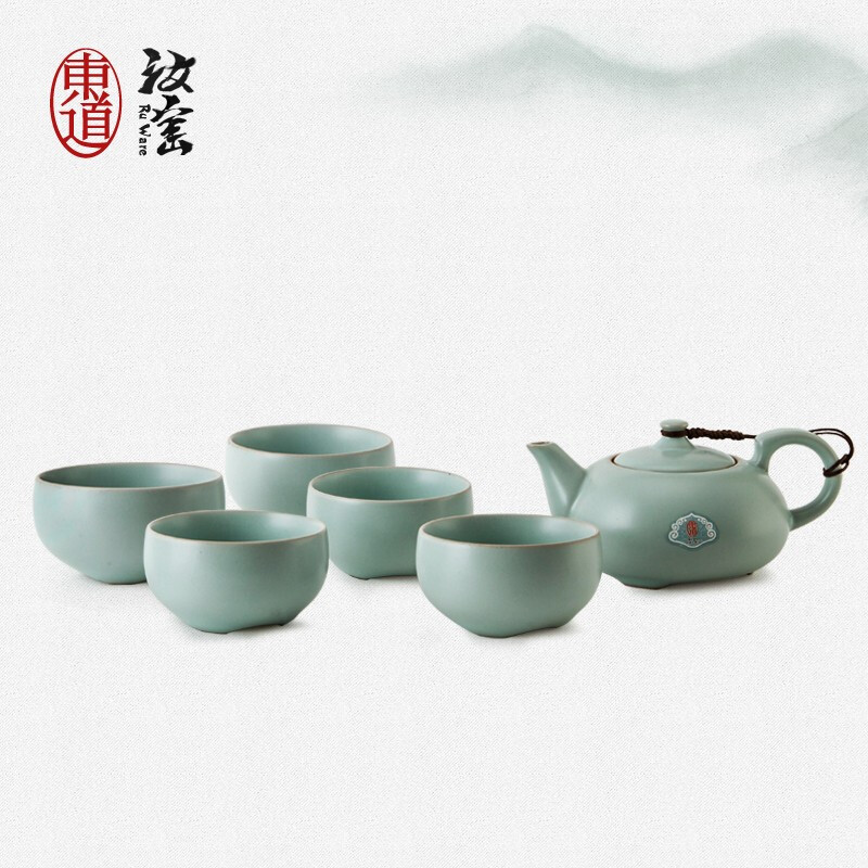 東道汝窯 功夫茶具套裝 喜樂壺杯組/一壺五杯(天青色)
